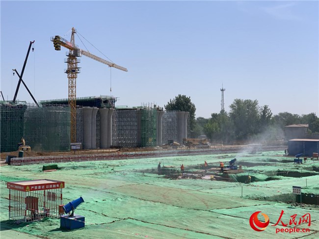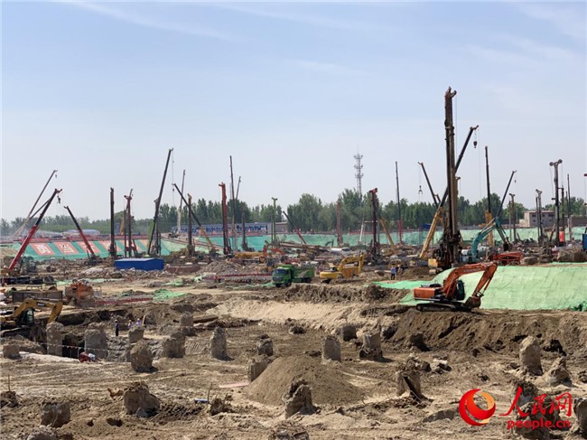 正在建設(shè)中的京雄高鐵站。人民網(wǎng)5月7日攝