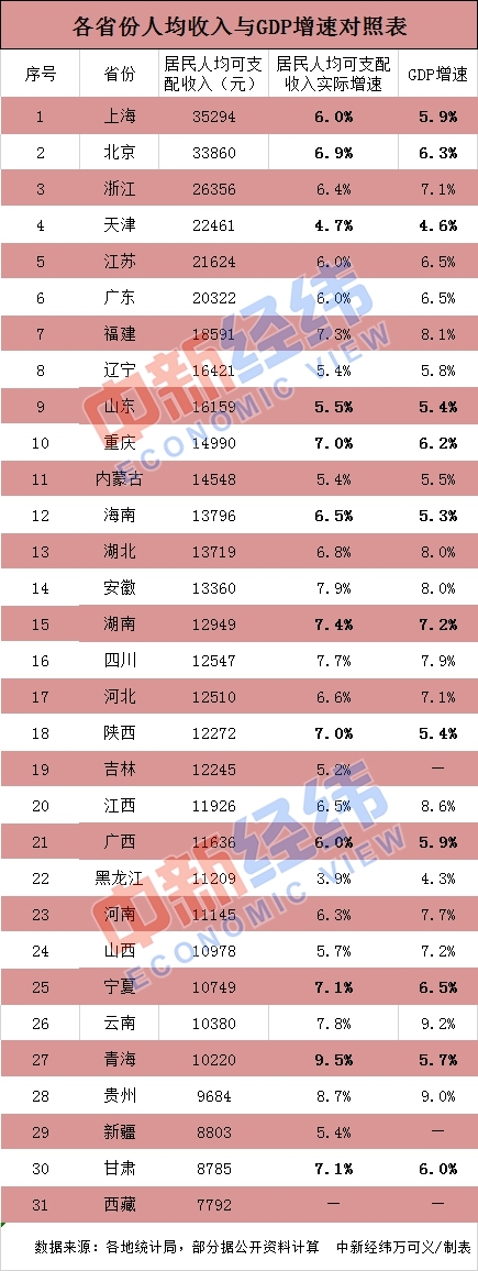 12省份人均可支配收入實(shí)際增速跑贏GDP
