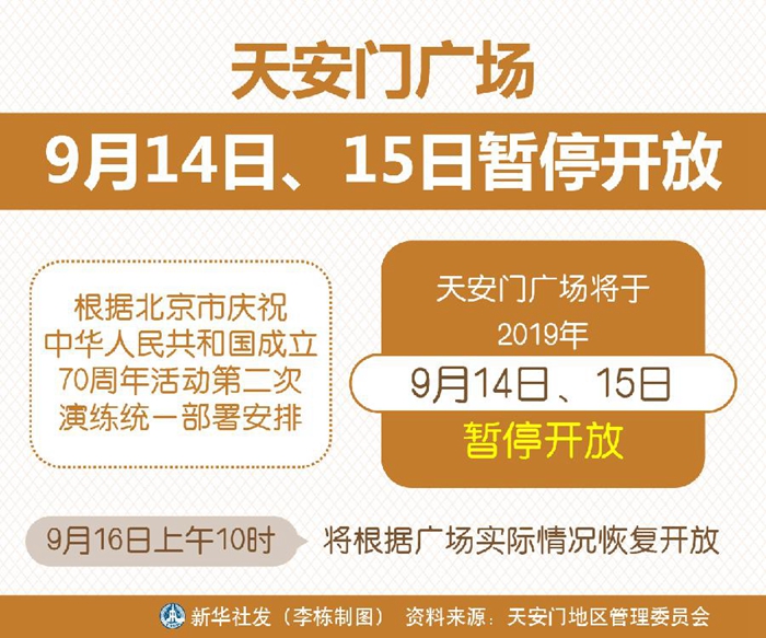天安門廣場(chǎng)9月14日、15日暫停開放