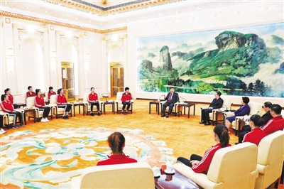 習(xí)近平強(qiáng)調(diào),全面建設(shè)社會(huì)主義現(xiàn)代化強(qiáng)國(guó),需要在各方面都強(qiáng)起來(lái)。實(shí)現(xiàn)體育強(qiáng)國(guó)目標(biāo),要大力弘揚(yáng)新時(shí)代的女排精神,把體育健身同人民健康結(jié)合起來(lái),把弘揚(yáng)中華體育精神同堅(jiān)定文化自信結(jié)合起來(lái),堅(jiān)持舉國(guó)體制和市場(chǎng)機(jī)制相結(jié)合,不忘初心,持之以恒,努力開創(chuàng)新時(shí)代我國(guó)體育事業(yè)新局面。希望中國(guó)女排繼續(xù)加油、再接再厲,期待你們?cè)跂|京奧運(yùn)會(huì)取得優(yōu)異成績(jī)。