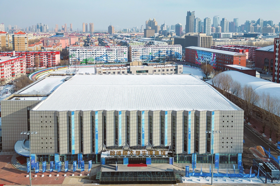 圖為1月27日拍攝的哈爾濱體育學院大學生滑冰館(女子冰球比賽場館)。