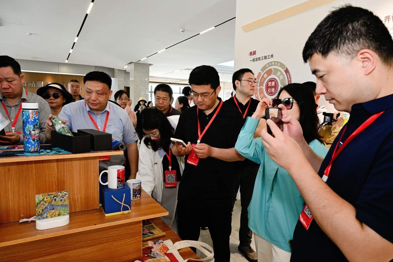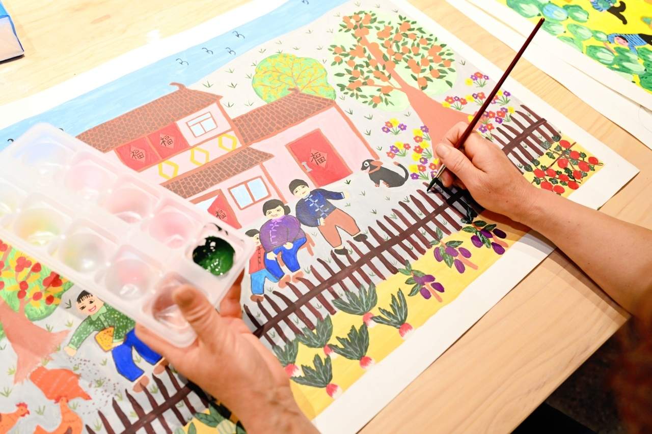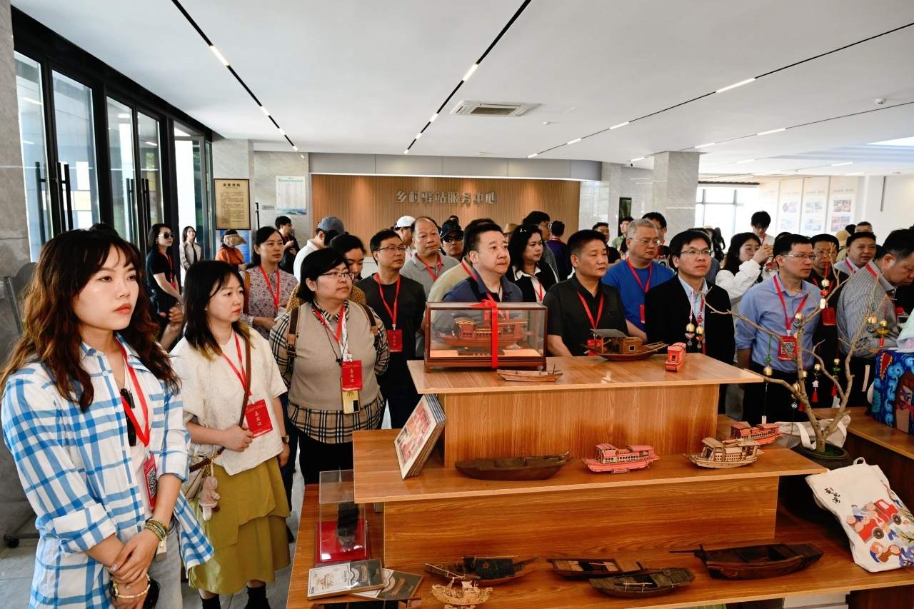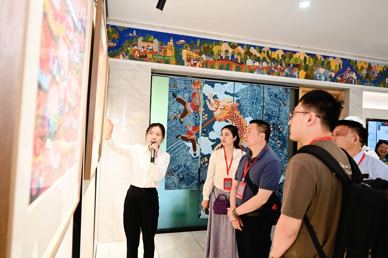 在農(nóng)民畫藝術(shù)展示空間,記者們在村民的農(nóng)民畫作品中感受到他們濃烈的幸福感與獲得感;“假日農(nóng)民畫非遺課堂”、農(nóng)民畫熱轉(zhuǎn)印體驗(yàn)等一系列研學(xué)課程、體驗(yàn)項(xiàng)目的開展,又讓大家真切體會到農(nóng)民畫與產(chǎn)業(yè)的有機(jī)融合;一樓大廳“驛站”里,基于秀洲農(nóng)民畫開發(fā)的各式文創(chuàng)產(chǎn)品令人忍不住就想“買買買”……