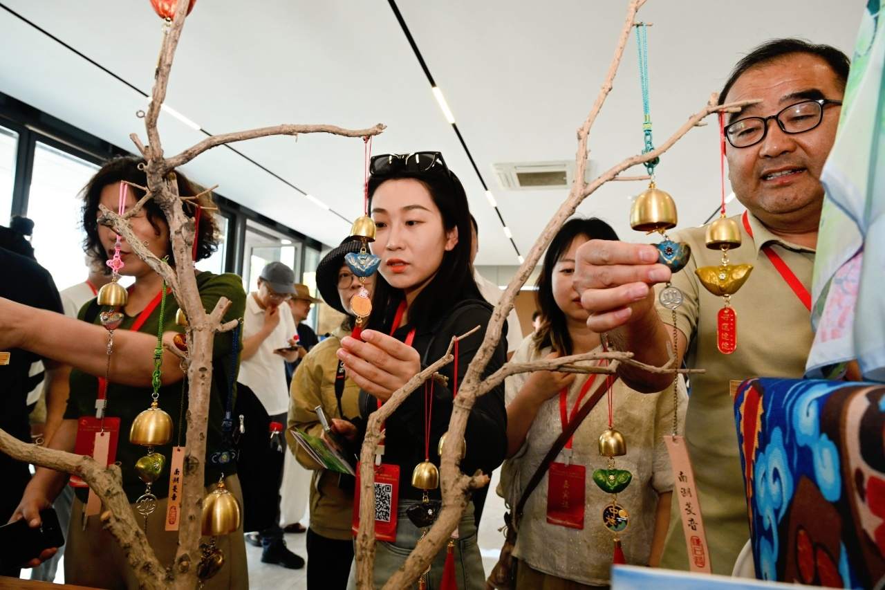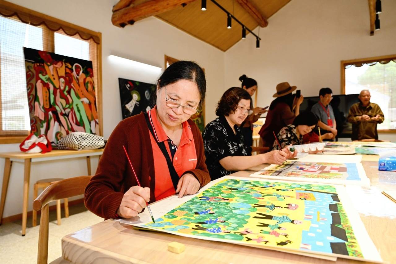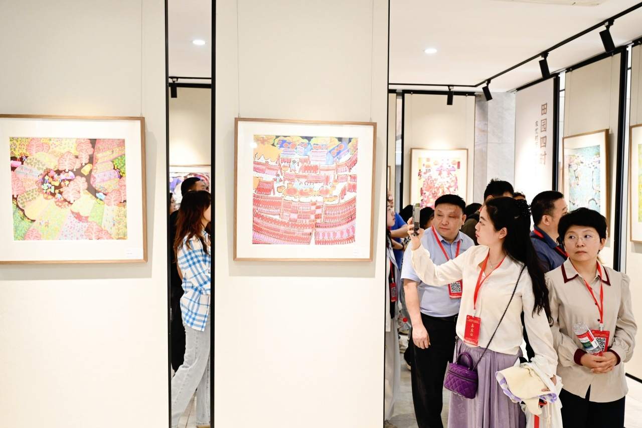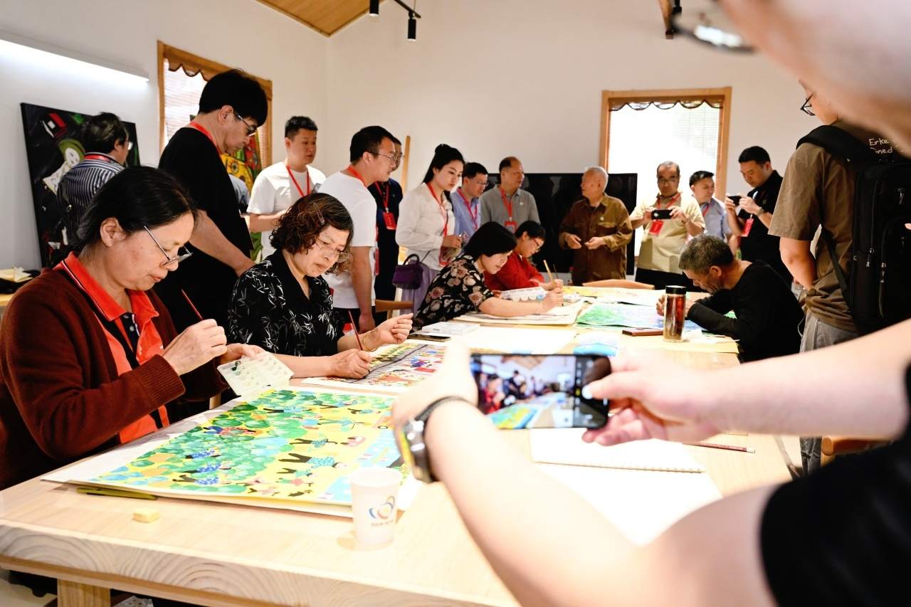 在農(nóng)民畫藝術(shù)展示空間,記者們在村民的農(nóng)民畫作品中感受到他們濃烈的幸福感與獲得感;“假日農(nóng)民畫非遺課堂”、農(nóng)民畫熱轉(zhuǎn)印體驗(yàn)等一系列研學(xué)課程、體驗(yàn)項(xiàng)目的開展,又讓大家真切體會到農(nóng)民畫與產(chǎn)業(yè)的有機(jī)融合;一樓大廳“驛站”里,基于秀洲農(nóng)民畫開發(fā)的各式文創(chuàng)產(chǎn)品令人忍不住就想“買買買”……