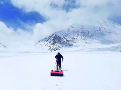 何曉波團(tuán)隊(duì)將冬克瑪?shù)妆ūO(jiān)測“武裝到了牙齒”,從5300米到5800米,每100米一個(gè)梯度,水文氣象站、激光雷達(dá)……2024年夏天,何曉波和團(tuán)隊(duì)嘗試使用無人機(jī)搭載非接觸探地雷達(dá),探測冰川厚度。“我們希望將冬克瑪?shù)妆ㄗ鳛閰⒖夹员?,通過更精準(zhǔn)、更自動化的監(jiān)測,研究它的消融機(jī)理,這里的監(jiān)測做好了,就可以推行到其他冰川研究上?!彼硎?。