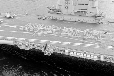 3日上午8時(shí)許,山東艦和3艘屬艦組成縱隊(duì)隊(duì)形,在香港特區(qū)政府船隊(duì)、駐香港部隊(duì)艦艇、直升機(jī)伴航伴飛下,駛?cè)刖S多利亞港。山東艦飛行甲板上,艦載戰(zhàn)斗機(jī)、直升機(jī)列陣,700余名海軍官兵身著白色軍裝,列隊(duì)排出“國(guó)安家好”4個(gè)大字,表達(dá)愛國(guó)愛港的濃濃深情和對(duì)香港同胞的美好祝福。海上,香港特區(qū)消防船用“水門禮”歡迎編隊(duì);空中,香港特區(qū)伴飛直升機(jī)現(xiàn)場(chǎng)直播編隊(duì)進(jìn)港實(shí)況;岸邊的民眾隔海向來訪官兵揮手致意。按照預(yù)定方案,山東艦和延安艦在維多利亞港西錨地錨泊,湛江艦和運(yùn)城艦??堪捍捃姞I(yíng)碼頭。