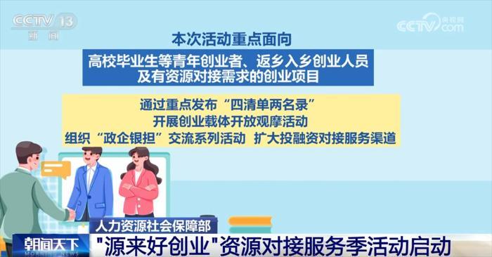 央視網(wǎng)消息:記者從人力資源社會保障部了解到,“源來好創(chuàng)業(yè)”資源對接服務季活動定于7月至9月在全國各地同步開展,通過搭建平臺、拓展渠道、集聚資源促進高質(zhì)量創(chuàng)業(yè)。