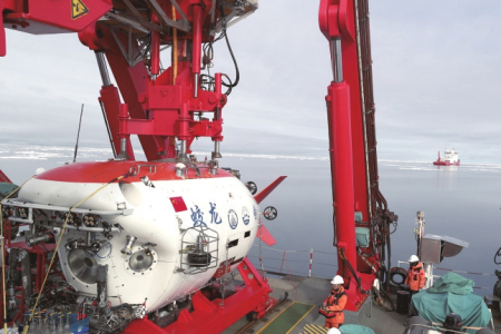 “蛟龍”號在北極冰區(qū)下潛(8月6日攝)。
