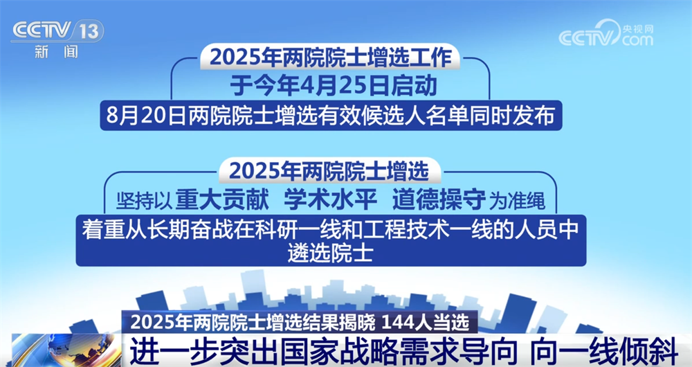 2025年兩院院士增選結(jié)果揭曉 144人當(dāng)選:進(jìn)一步突出國家戰(zhàn)略需求導(dǎo)向 向一線傾斜