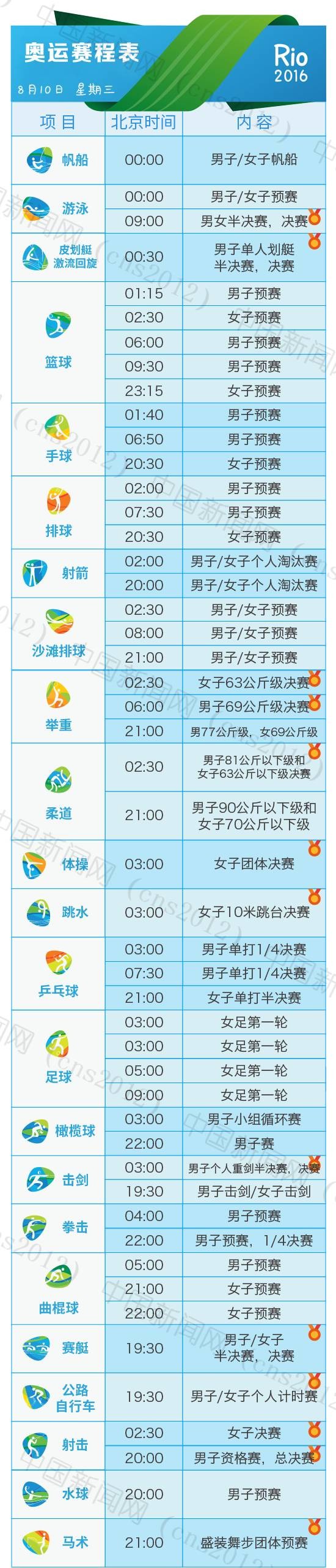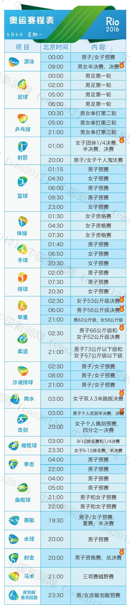 里約奧運(yùn)會完整賽程表