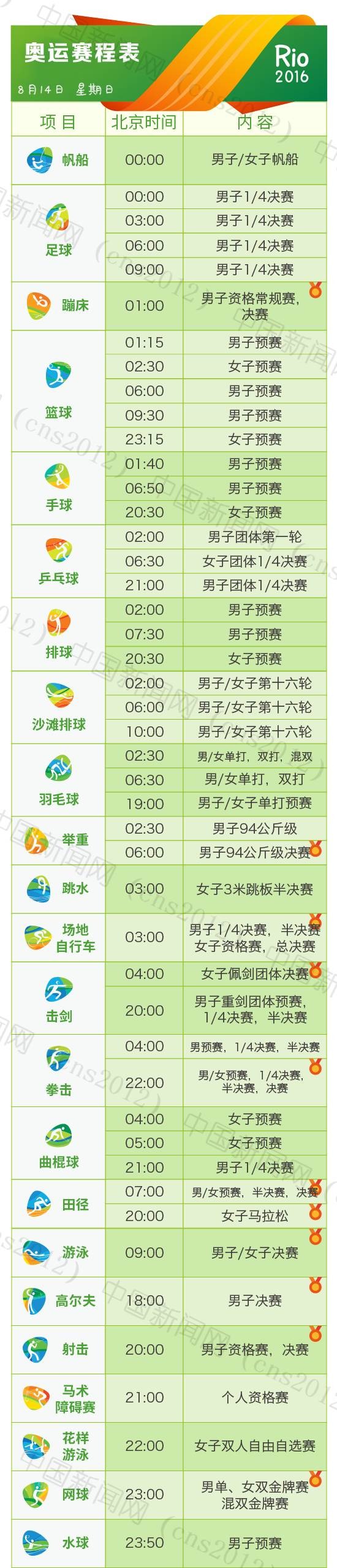 里約奧運(yùn)會(huì)完整賽程表