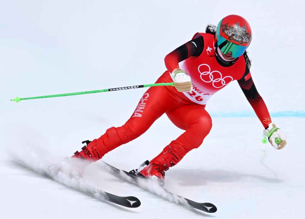 2月15日,中國(guó)選手孔凡影在北京冬奧會(huì)高山滑雪女子滑降項(xiàng)目比賽中。新華社記者張晨霖?cái)z