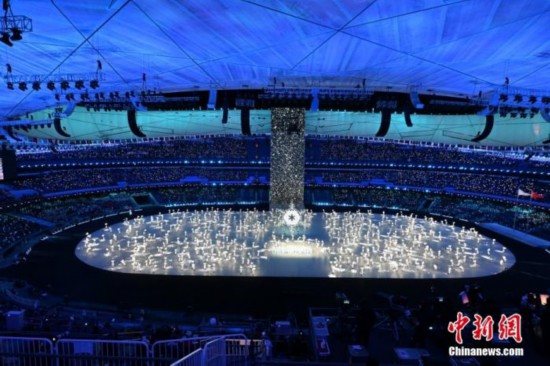 北京冬奧會(huì)開幕式上的“雪花”環(huán)節(jié)。 中新社記者 毛建軍 攝