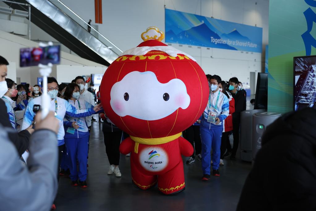 3月8日,北京2022年冬殘奧會吉祥物“雪容融”出現在主媒體中心。新華社發(fā)(胡星宇攝)