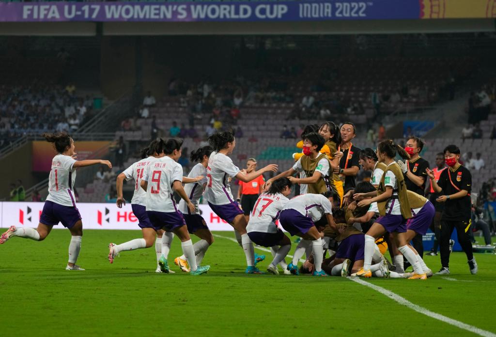 新華社孟買10月12日電 在12日進(jìn)行的2022年U17女足世界杯C組首輪比賽中,中國隊(duì)以2:1戰(zhàn)勝墨西哥隊(duì),取得“開門紅”。