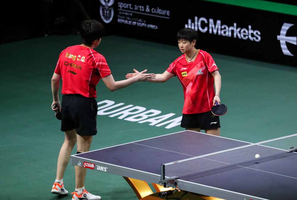 陳夢/王藝迪3:0擊敗羅馬尼亞組合薩馬拉/德拉戈曼,晉級女雙八強(qiáng)。