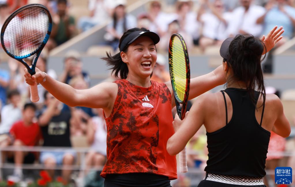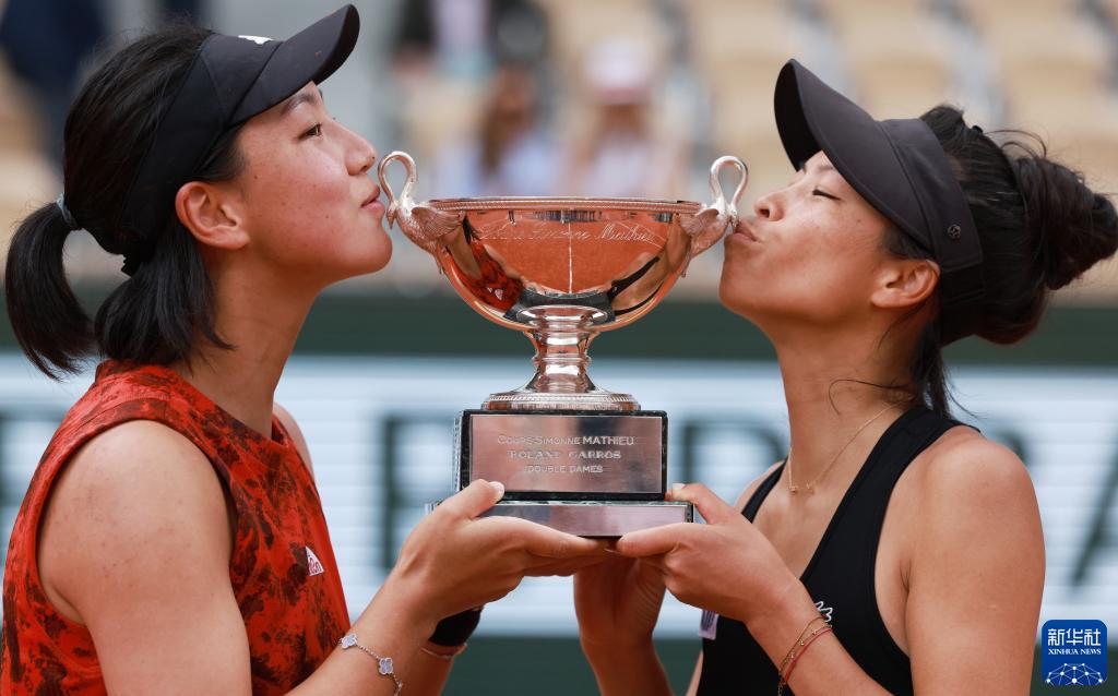 6月11日,王欣瑜(左)/謝淑薇捧起女雙冠軍獎杯。新華社記者 高靜 攝 新華社巴黎6月11日電(記者肖亞卓、陳毓珊)中國選手再次在網(wǎng)球大滿貫賽事中登頂!在11日進行的2023年法國網(wǎng)球公開賽女雙決賽中,中國隊“小花”王欣瑜搭檔中國臺北名將謝淑薇在先失一盤的情況下以1:6、7:6(5)、6:1逆轉(zhuǎn)戰(zhàn)勝加拿大選手費爾南德斯和美國選手湯森的組合,奪取冠軍。 這僅是王欣瑜和謝淑薇搭檔以來參加的第二站賽事。倆人是在一個月前的意大利公開賽時遇到并臨時決定配對雙打。法網(wǎng)前一周的斯特拉斯堡公開賽是她倆搭檔的首秀,當(dāng)時止步第二輪。來到羅蘭·加洛斯,這對“海峽組合”一路過關(guān)斬將,連續(xù)淘汰5對種子選手,最終問鼎冠軍。