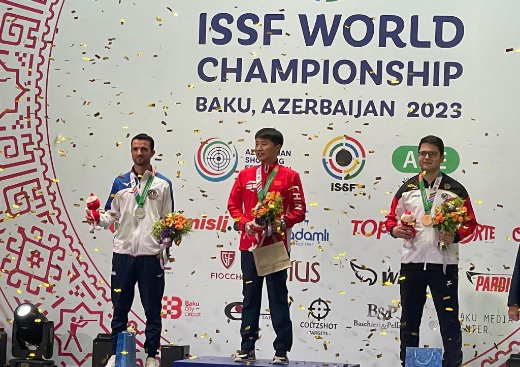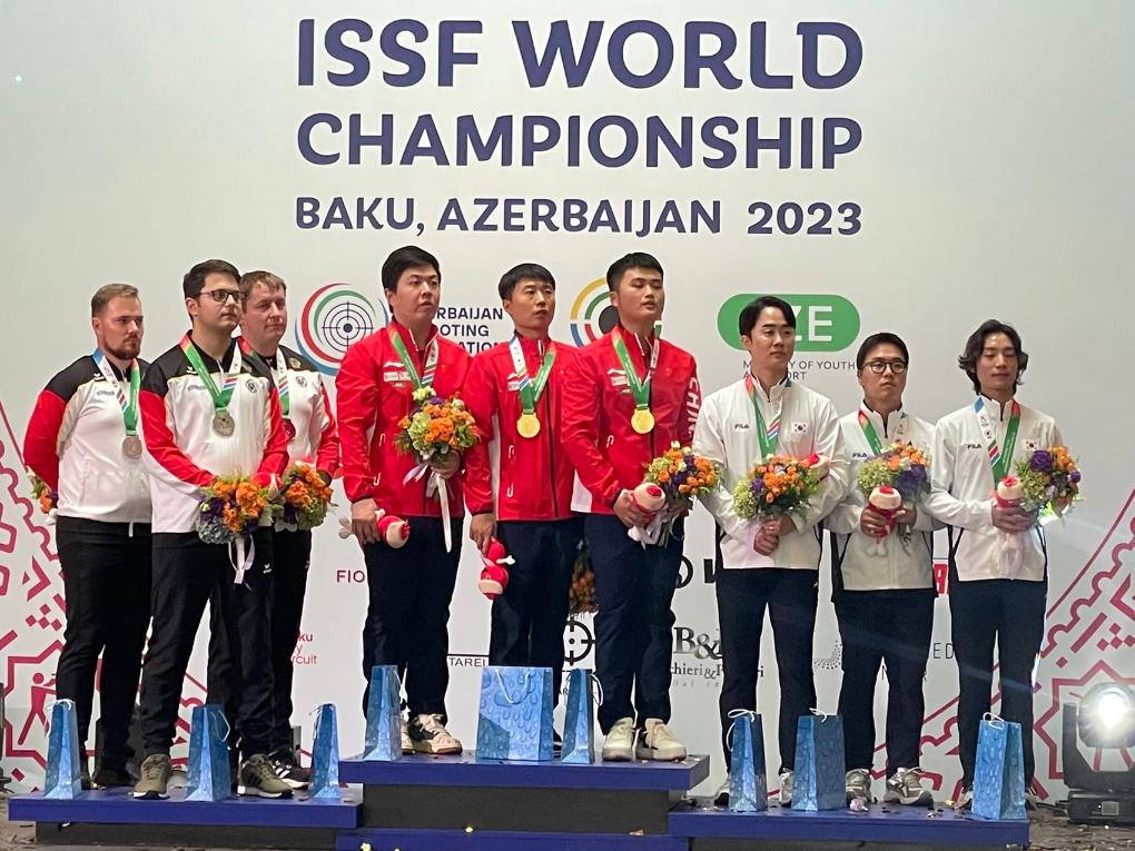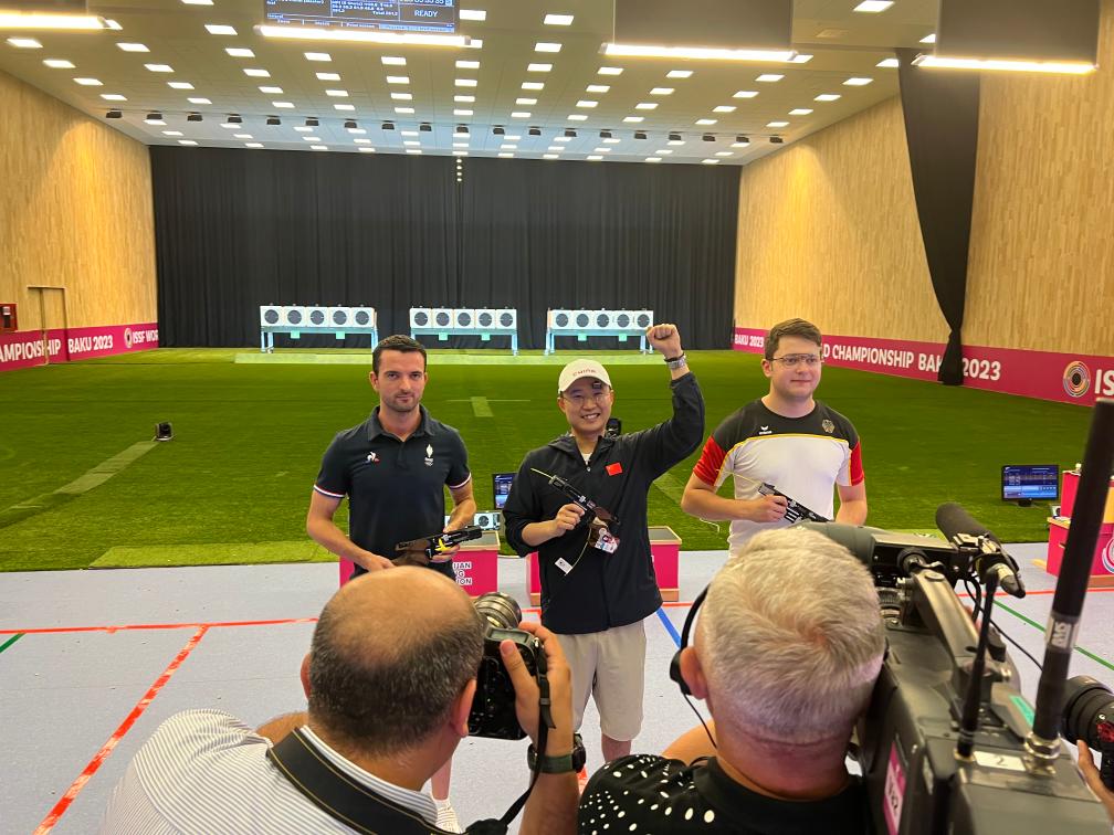 該項(xiàng)目比賽中,中國隊(duì)老將新人都有出色發(fā)揮。首次參加國際比賽的王鑫杰資格賽打出588環(huán)排名第一,與位居次席的李越宏攜手晉級(jí)決賽。他們兩人與劉楊攀組成的中國隊(duì)團(tuán)體成績(jī)1756環(huán),追平了世界紀(jì)錄,足足領(lǐng)先亞軍德國隊(duì)16環(huán)。
