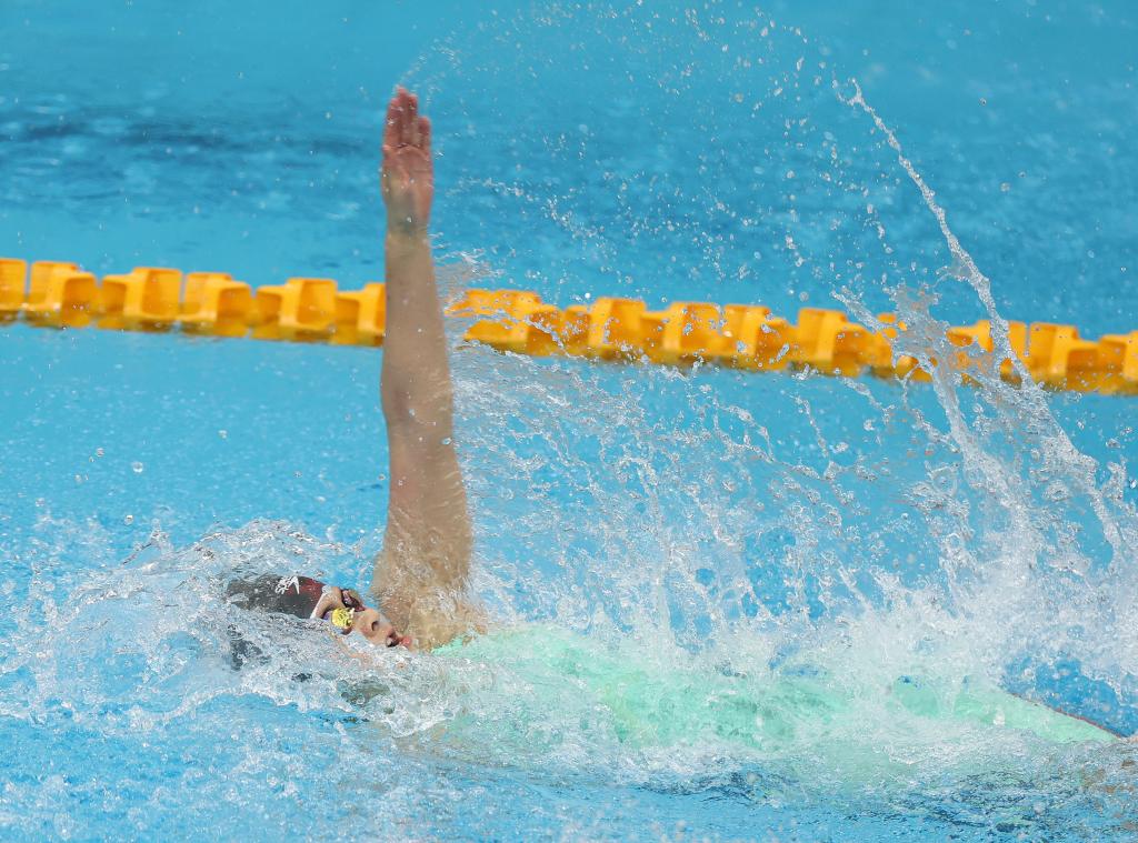 11月7日,上海隊(duì)選手戴佳寧在比賽中。新華社記者 楊植森 攝 “9月份我去了昆明,第一次上高原訓(xùn)練,效果還是很明顯?!币?8秒92的成績(jī)摘得女子中學(xué)組50米仰泳金牌的上海隊(duì)戴佳寧在賽后如此總結(jié)心得。 廣東隊(duì)同樣表現(xiàn)亮眼,獲得5金3銀2銅。來自深圳大學(xué)的林濤不僅拿下男子大學(xué)乙組50米仰泳冠軍,更是在之后的男子大學(xué)乙組4X100米自由泳接力中完成最后一棒的漂亮逆轉(zhuǎn),幫助本隊(duì)以0.73秒的優(yōu)勢(shì)戰(zhàn)勝上海隊(duì)。 繼前一天三名女選手超世界青年紀(jì)錄之后,女子舉重公開組比賽7日再現(xiàn)超世界青年紀(jì)錄的好成績(jī)。抓舉110公斤、挺舉136公斤、總成績(jī)246公斤,李霜展現(xiàn)了在女子64公斤級(jí)領(lǐng)域的絕對(duì)統(tǒng)治力。廈門隊(duì)選手楊柳月、廣州隊(duì)選手潘智欣分別以229公斤、236公斤的總成績(jī)拿下女子59公斤級(jí)和女子71公斤級(jí)金牌。