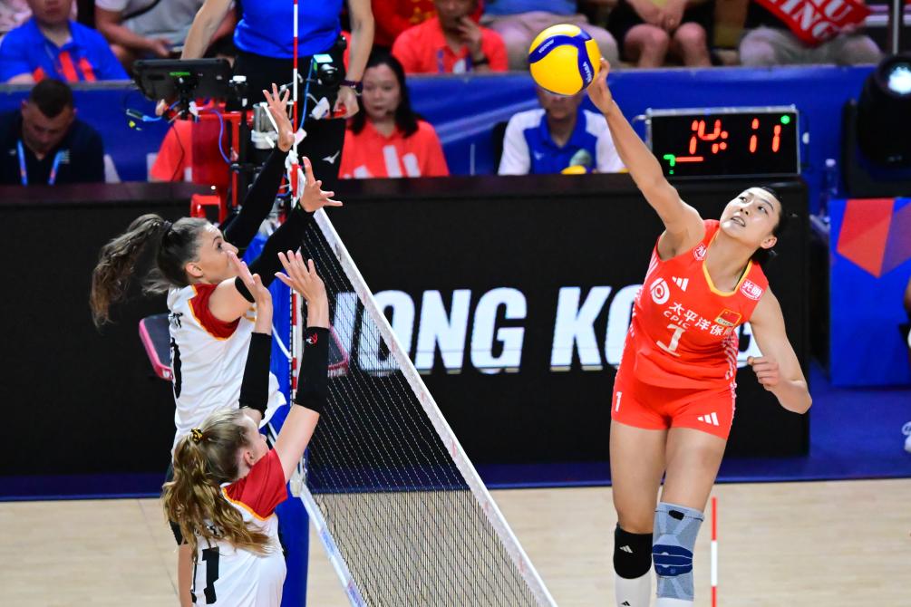 6月14日,中國隊球員袁心玥(右)在比賽中扣球。當日,在世界女排聯(lián)賽中國香港站比賽中,中國隊3比0戰(zhàn)勝德國隊。新華社記者 朱煒 攝 朱婷:腰傷無礙 希望呈現(xiàn)最佳狀態(tài) 在今年5月的世界女排聯(lián)賽澳門站比賽中,闊別國家隊已久的主攻手朱婷再次登場。但在香港站對陣土耳其隊比賽前的訓練中,朱婷表示腰部受傷。 “現(xiàn)在還在治療,但是已經(jīng)沒什么大事了?!敝戽迷谡闹萁邮懿稍L時回應道。 記者看到,她在訓練中跑、跳、扣球、救球等動作表現(xiàn)正常。朱婷曾隨隊獲得里約奧運會女排金牌,在東京奧運周期亦率領中國隊在一系列國際大賽中取得優(yōu)異成績。但東京奧運會前后,這名世界排壇的標桿級主攻頻受傷病困擾。