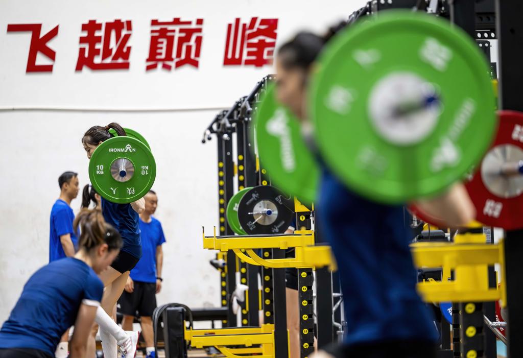 7月13日,中國女排隊員在進行力量訓練。新華社記者 魏培全 攝 袁心玥:第三次參加奧運會 心里更有底 中國女排現(xiàn)任隊長、副攻手袁心玥即將第三次參加奧運會。她說:“我覺得這次參加奧運會心里會有底一些,仍然很激動,仍然很期待這一次奧運會?!?/p> 曾隨隊獲得里約奧運會女排金牌的她表示,希望在巴黎奧運會中能夠大膽地展現(xiàn)自己的技戰(zhàn)術能力,在攔防上給予隊友支持。 “我希望我們能夠以最好的姿態(tài)站在巴黎的賽場上?!?/p> 談及隊伍在剛剛結束的世界女排聯(lián)賽上的收獲,袁心玥認為,參加世界女排聯(lián)賽不僅是為了拿奧運資格,更是為了練兵備戰(zhàn)。 “通過這幾站比賽,我覺得最主要的是我們隊伍的磨合比之前更好了,隊員們的心態(tài)也比以前更成熟了,相互之間也能更多地給予支持和鼓勵。”