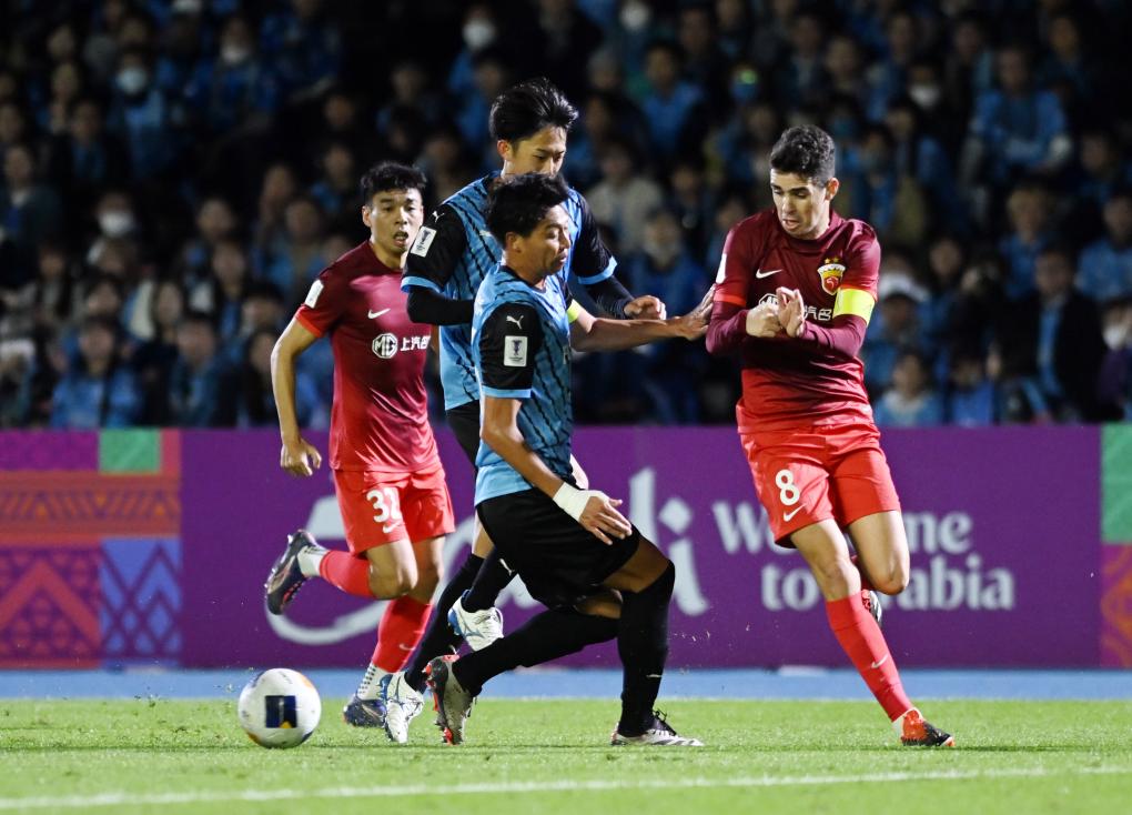 上半場川崎前鋒隊(duì)多次利用前場逼搶和邊路傳中創(chuàng)造機(jī)會,完全占據(jù)場上主動(dòng)。第12分鐘,川崎前鋒隊(duì)?wèi){借老將家長昭博禁區(qū)內(nèi)的凌空抽射先拔頭籌。僅1分鐘后,上海海港隊(duì)球門再度失守,瀨川祐輔補(bǔ)射破門,為主隊(duì)擴(kuò)大領(lǐng)先優(yōu)勢。第33分鐘,川崎前鋒隊(duì)的范韋爾梅斯克肯推射入網(wǎng),半場結(jié)束上海海港隊(duì)0:3落后。