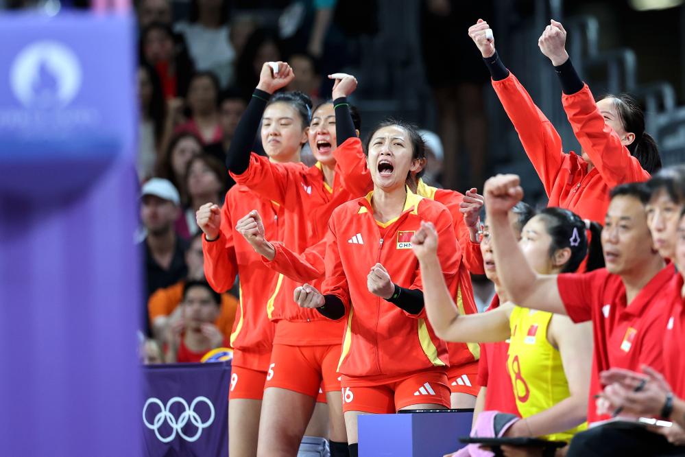 7月29日,中國女排在巴黎奧運會女排小組賽對陣美國隊的比賽中。新華社記者 李鋼 攝
