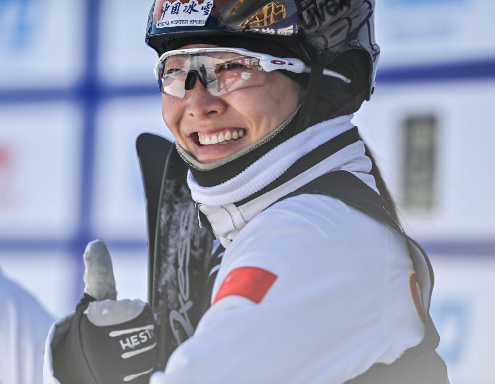 2月24日,中國(guó)隊(duì)徐夢(mèng)桃在比賽后慶祝。新華社記者 顏麟蘊(yùn) 攝