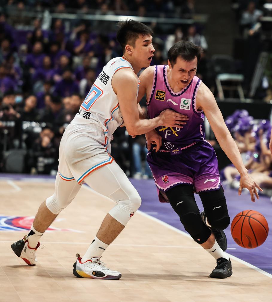 4月8日,北控隊(duì)球員廖三寧(中)在比賽中突破。新華社記者 王楷焱 攝 系列賽第一場(chǎng),北控隊(duì)以5分優(yōu)勢(shì)先下一城。此番再次面對(duì)山東隊(duì),北控隊(duì)全員信心十足,首節(jié)以22:19取得領(lǐng)先。第二節(jié)張帆內(nèi)突外投連續(xù)得分,幫助北控將分差拉開(kāi)到兩位數(shù)。山東隊(duì)高詩(shī)巖在暫?;貋?lái)后連中兩記三分,但無(wú)法阻擋全員狀態(tài)良好的北控隊(duì),半場(chǎng)北控以45:37領(lǐng)先。易邊再戰(zhàn),山東隊(duì)未能挽回局面,北控隊(duì)繼續(xù)擴(kuò)大優(yōu)勢(shì)。進(jìn)入末節(jié),山東隊(duì)摩爾連續(xù)命中,比分一度追到只差6分。最后兩分鐘,分差重回兩位數(shù)。最終,北控隊(duì)以93:84力克山東隊(duì)打進(jìn)八強(qiáng)。 北控隊(duì)代理主教練格蘭表示:“我們的球隊(duì)每天都在進(jìn)步,我們堅(jiān)持做好自己,通過(guò)防守去贏得比賽,就像第一場(chǎng)一樣。接下來(lái)的比賽,我們會(huì)繼續(xù)全力以赴?!?/p>