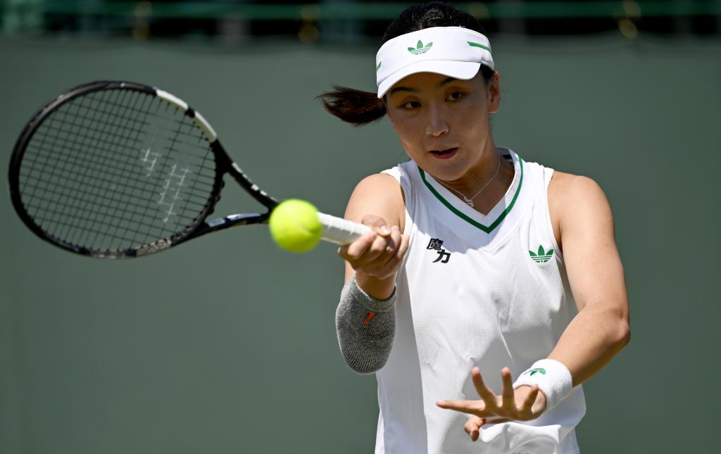 7月1日,鄭欽文在比賽中回球。新華社記者 李穎 攝