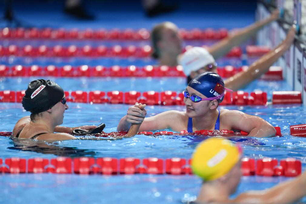 同為中長(zhǎng)距離自由泳女將,對(duì)23歲的李冰潔來(lái)說(shuō),28歲的萊德茨基是她一直以來(lái)的榜樣和對(duì)手。“她是我從小就想超越的人。”李冰潔說(shuō),“我記得2017年時(shí)我就說(shuō)過(guò)想超越她,她一直以來(lái)在我心里都是一個(gè)非常偉大的運(yùn)動(dòng)員,我也從她身上學(xué)到了很多東西,今天戰(zhàn)勝了她,我感到非常感慨,感覺(jué)(戰(zhàn)勝萊德茨基)這么多年來(lái)是我心里的一個(gè)掛念?!?/p>