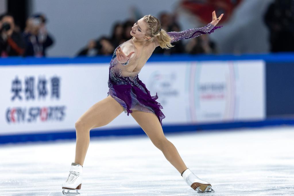 2024年11月23日,美國(guó)選手安伯·格倫在2024年中國(guó)杯世界花樣滑冰大獎(jiǎng)賽女子單人滑自由滑比賽中。新華社記者 黃偉 攝