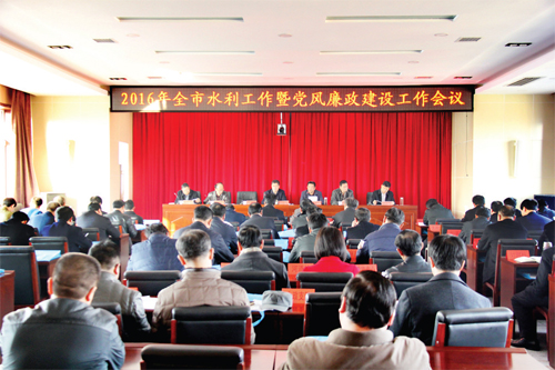 2016年全市水利工作暨黨風(fēng)廉政建設(shè)工作會(huì)議現(xiàn)場(chǎng)