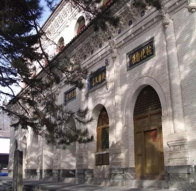 無量殿是一座磚砌結構建筑。相傳,唐代清涼國師澄觀于唐德宗建中四年在此殿內著述《華嚴疏抄》,寫作達四年之久。殿內供毗盧佛大銅像,取佛法無量之意,稱為“無量殿”。又因殿內沒有梁柱,有人也叫“無梁殿”。這座殿分上下兩層,也是明七暗三,面寬28.2米,進深16米,高20.3米,重檐歇山頂,磚券而成,三個連續(xù)拱并列,左右山墻成為拱腳,各間之間依靠開拱門聯(lián)系,型制奇特,雕刻精湛,宏偉壯觀,是我國古代磚石建筑藝術的杰作。無量殿正面每層有七個閣洞,閣洞上嵌有磚雕匾額,有的題“普光明殿”,有的題“法菩提場”等等。顯通寺無量殿東側的明代16級木質高塔。意喻釋迦牟尼佛“七處九會”,即釋迦牟尼在七處地方九次講《華嚴經》。因此,無量殿又稱七處九會殿。
