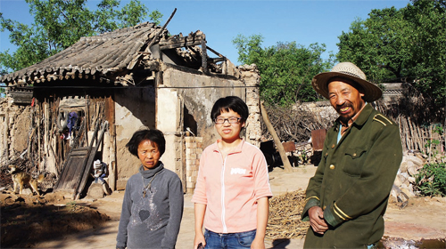 晏村是個(gè)有300多戶、3000多口人的村子,地勢高低不平,生活條件好些的村民搬遷到了城里或是村頭較為平整的地方居住了,留在村里的大部分是老人和小孩子。沿著彎彎曲曲、高低起伏的水泥路左拐右轉(zhuǎn),是宿香玲一家暫時(shí)寄居的地方——她故去叔叔的家。院子里也是幾間破舊的房子,屋內(nèi)墻壁、灶臺(tái)、土炕都是黑乎乎的,沒有一件像樣的家具,順著墻根有七八個(gè)大塑料袋,里面分別放著衣服和一些食用物品,宿香玲說,這些都是好心人和志愿者捐助的,這就是宿香玲家的全部家當(dāng)。