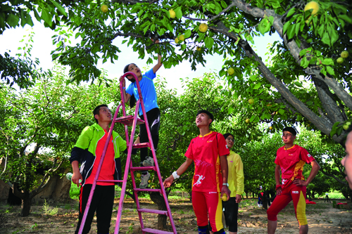 運(yùn)動(dòng)健兒杏園采摘白水杏