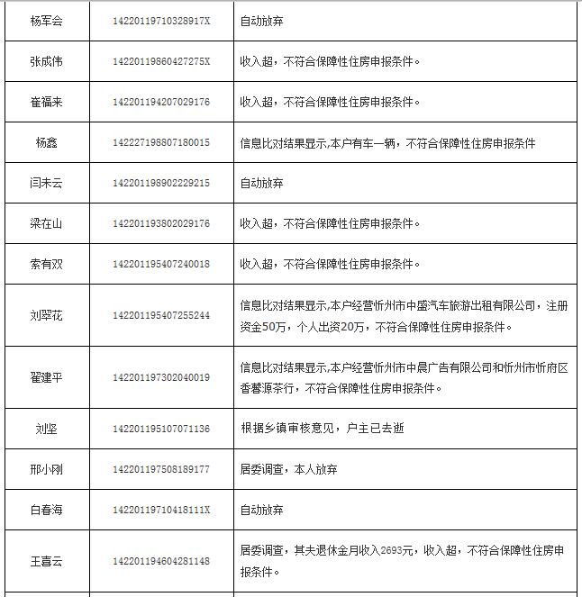 2014年申報(bào)公(廉)租房不符合保障條件花名表