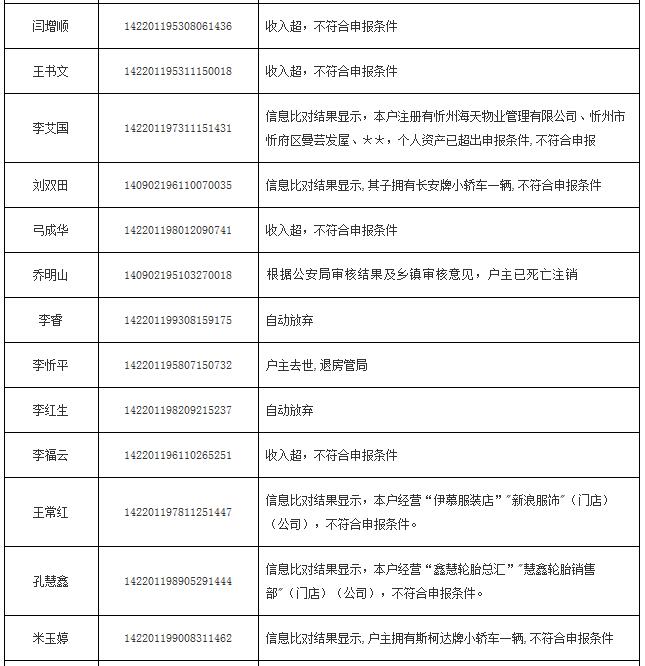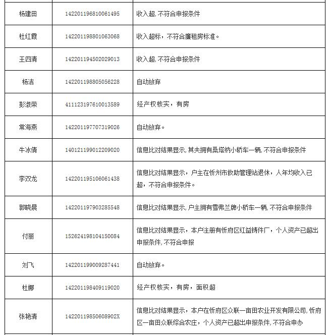 2014年申報(bào)公(廉)租房不符合保障條件花名表