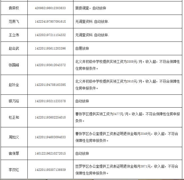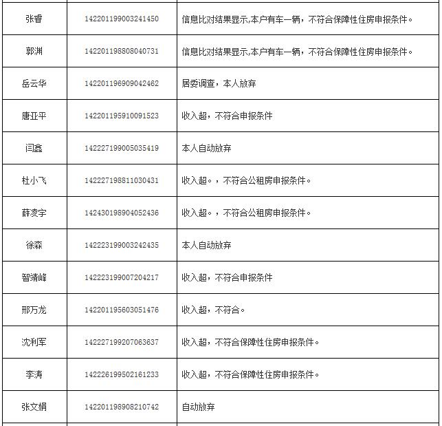 2014年申報(bào)公(廉)租房不符合保障條件花名表