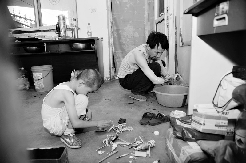 王貴生從外面撿的一些器械零件成了小志偉的玩具。