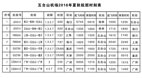 據(jù)了解,五臺山機場通過充分的市場調(diào)研并結合五臺山機場保障能力,克服熱點城市航班時刻緊缺、航空公司運力緊張等困難,先后開通上海浦東——五臺山、天津——五臺山、重慶——五臺山、銀川——五臺山、??凇鹆帧迮_山等航線。同時,積極完善旅客服務配套設施:開通機場——忻州市內(nèi)和機場——五臺山景區(qū)兩條專線巴士線路,機場——朔州市內(nèi)巴士線路也即將開通。為了方便市內(nèi)居民航空出行購票,機場于年初1月8日在市內(nèi)泛華京倫酒店北廳設立五臺山機場售票中心,提供24小時購票服務,并于6月12日在五臺山機場旅客服務中心正式落戶,為往來景區(qū)游客提供票務、保險、航班信息查詢、機場巴士等服務。