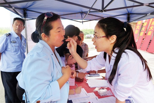 據(jù)了解,我市“幸福啟航·口腔健康公益行”活動(dòng)由忻州美源口腔醫(yī)院負(fù)責(zé)執(zhí)行實(shí)施。該醫(yī)院是山西紅十字口腔醫(yī)院在我市開設(shè)的第一所分支機(jī)構(gòu),依托450名專業(yè)口腔醫(yī)護(hù)團(tuán)隊(duì),配備國際頂尖的牙科診療設(shè)備,讓忻州市民享受到國際水準(zhǔn)的口腔醫(yī)療體驗(yàn)。據(jù)悉,忻州美源口腔醫(yī)院將成立專家組深入社區(qū)為廣大市民開展免費(fèi)口腔檢查,為牙列不齊、缺失牙的貧困家庭婦女兒童,提供每例最高5000元的醫(yī)療資助服務(wù)。該院負(fù)責(zé)人表示,希望通過本次活動(dòng)能夠傳播正確的口腔健康觀念,教授口腔健康保健知識,讓我市更多的市民有一口好牙。圖為口腔專家現(xiàn)場為市民檢查口腔(張志遠(yuǎn) 王菲)