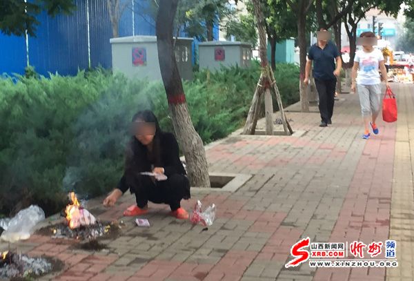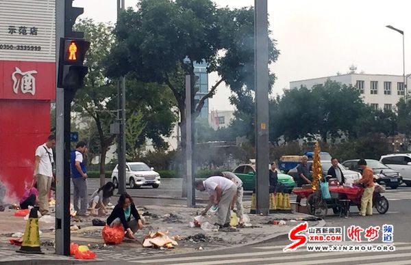 中元節(jié)市民路旁扎堆燒紙忙壞環(huán)衛(wèi)工