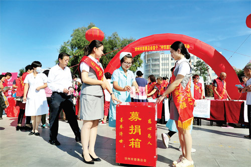 9月1日,《中華人民共和國慈善法》(以下簡稱《慈善法》)正式實施,9月5日是我國首個“中華慈善日”。這天上午,忻州市慈善總會在忻州城區(qū)日月廣場舉行規(guī)模盛大的集會,向廣大市民宣傳普及國家《慈善法》的相關(guān)知識。中國公益在線忻州愛心團的志愿者,同濟醫(yī)院、新世紀(jì)女子醫(yī)院、中西醫(yī)結(jié)合醫(yī)院、忻州肝泰肛腸醫(yī)院的醫(yī)務(wù)人員參加了宣傳活動,并慷慨解囊,與市慈善總會工作人員一道參與了現(xiàn)場的慈善捐款活動。