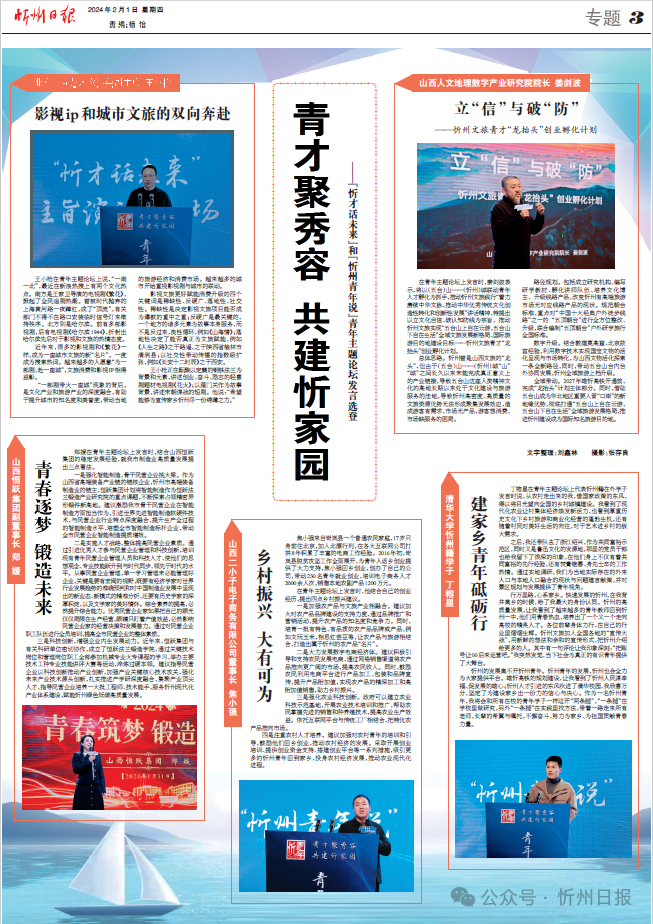 在青年主題論壇上發(fā)言時(shí),姜?jiǎng)Σū硎?,將以(五臺(tái))山——(忻州)城聯(lián)動(dòng)青年人才孵化為抓手,推動(dòng)忻州文旅踐行“著力賡續(xù)中華文脈、推動(dòng)中華優(yōu)秀傳統(tǒng)文化創(chuàng)造性轉(zhuǎn)化和創(chuàng)新性發(fā)展”講話精神,特提出以立文化自信、破認(rèn)知防線為宗旨, 推動(dòng)忻州文旅實(shí)現(xiàn)“五臺(tái)山上自在云游,五臺(tái)山下自在生活”全域文旅發(fā)展新格局、國(guó)際旅游目的地建設(shè)目標(biāo)——忻州文旅青才“龍?zhí)ь^”創(chuàng)業(yè)孵化計(jì)劃。