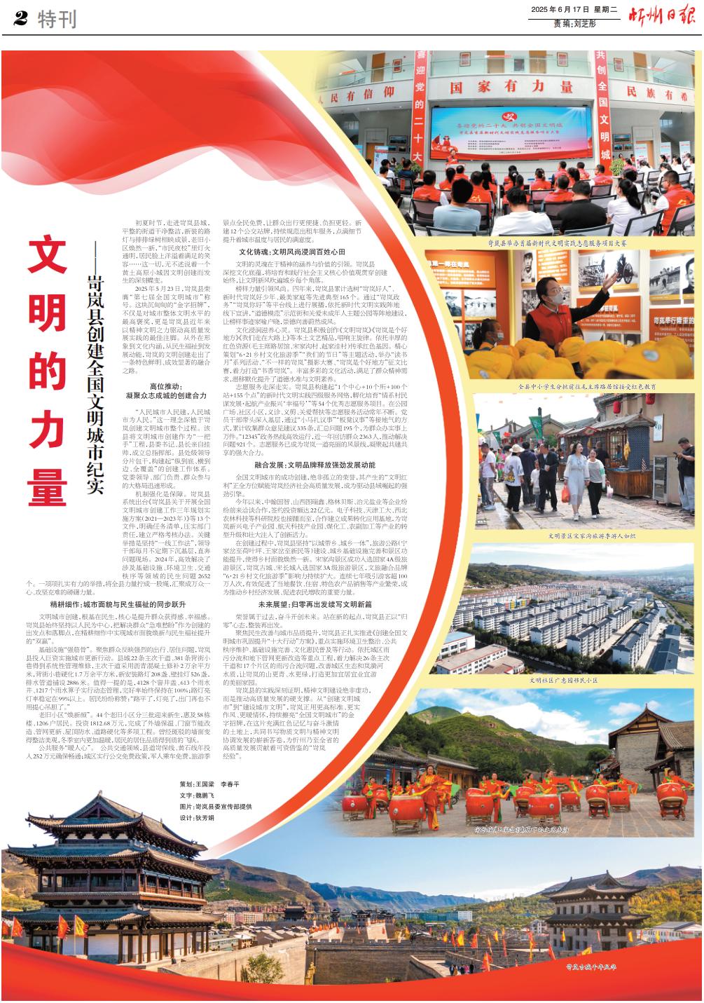 岢嵐縣的實(shí)踐深刻證明,精神文明建設(shè)絕非虛功,而是推動(dòng)高質(zhì)量發(fā)展的硬支撐。從“創(chuàng)建文明城市”到“建設(shè)城市文明”,岢嵐正用更高標(biāo)準(zhǔn)、更實(shí)作風(fēng)、更暖情懷,持續(xù)擦亮“全國文明城市”的金字招牌,在這片充滿紅色記憶與奮斗激情的土地上,共同書寫物質(zhì)文明與精神文明協(xié)調(diào)發(fā)展的嶄新答卷,為忻州乃至全省的高質(zhì)量發(fā)展貢獻(xiàn)著可資借鑒的“岢嵐經(jīng)驗(yàn)”。