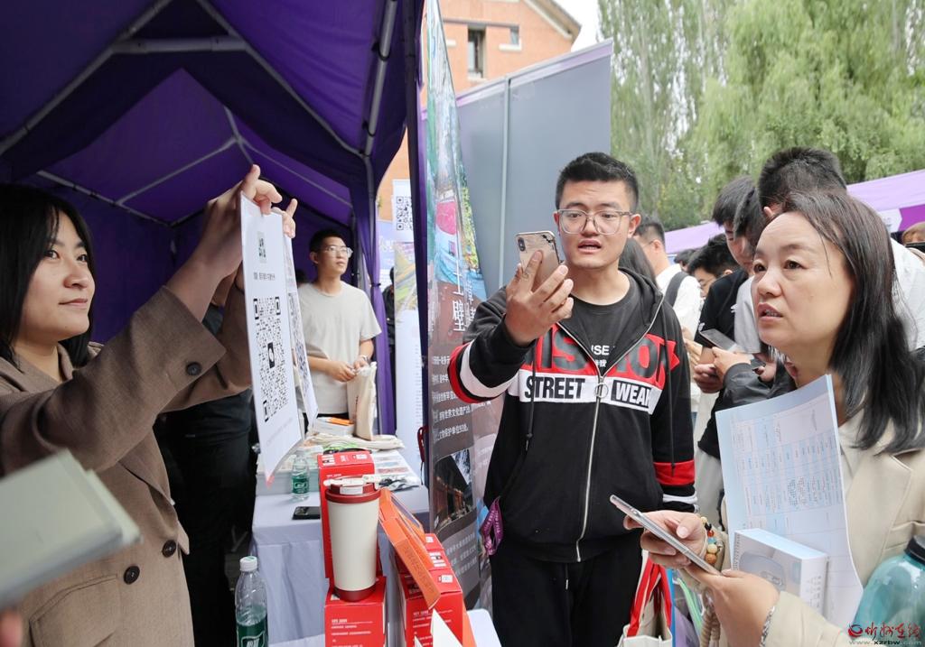 “人才引進(jìn)雙選會(huì)”學(xué)生掃碼了解信息。范琛攝