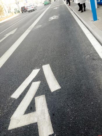 圖為城區(qū)長(zhǎng)征中街(君華新天地對(duì)面)一公交站牌處,印在路面上的“公交車”三個(gè)字順序錯(cuò)誤。正常閱讀順序是從上至下,從左至右,希望相關(guān)部門更正。一網(wǎng)友攝