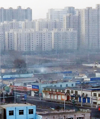 圖2為開(kāi)發(fā)區(qū)小檀村有人家在燒煤。一網(wǎng)友攝