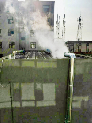 圖1為城區(qū)榮鈺苑小區(qū)院內(nèi)一飯店,四個(gè)排氣煙筒發(fā)出的噪音讓小區(qū)周邊居民無(wú)法正常休息,排放出的油煙散發(fā)出嗆人的味道,住戶沒(méi)法開(kāi)窗戶,希望相關(guān)部門(mén)管理。一網(wǎng)友攝