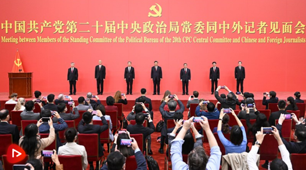 “我們一定牢記黨的性質(zhì)和宗旨,牢記自己的使命和責(zé)任,恪盡職守、勤勉工作,決不辜負(fù)黨和人民重托?!?3日中午,在中國(guó)共產(chǎn)黨第二十屆中央委員會(huì)第一次全體會(huì)議上當(dāng)選為中共中央總書記的習(xí)近平,率領(lǐng)新一屆中央政治局常委在人民大會(huì)堂同采訪黨的二十大的中外記者親切見面。習(xí)近平總書記發(fā)表重要講話時(shí)強(qiáng)調(diào):“藍(lán)圖已經(jīng)繪就,號(hào)角已經(jīng)吹響。我們要踔厲奮發(fā)、勇毅前行,努力創(chuàng)造更加燦爛的明天?!?/p>